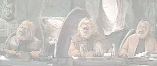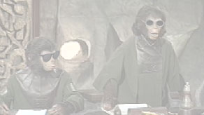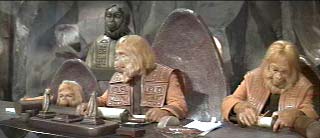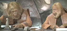 El Presidente': As I was, heh, heh... uh...oh, lord... (wipes tears from his eyes)...WHEW!... yes, as I was saying... on my left is Dr. Zaius, Minister of Science and Chief Defender of the Faith. And appearing for the State, Dr. Homorius, Effeminate Minister of Justice.