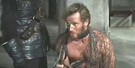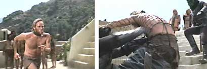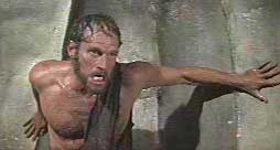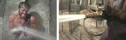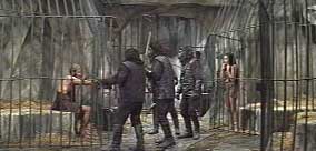 The gorillas put Nova in a separate cell directly across from Taylor's. Julius, still grunting and howling, continues to spray Taylor with a steady stream of high pressure water as Taylor in turn spews out a stream of obscenities...