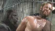 Taylor starts running up the arena seats toward Dr. Zaius to attack him, but is captured in a net and wrestled to the ground by gorilla guards before he can reach him...