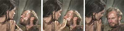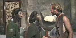 Taylor, hmiliated by this public come-on, looks back at Zira and Cornelius for some support, but they are looking at each other, avoiding his forlorn look, trying their best not to laugh at this last comment...