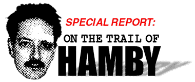 Hamby has had a long line of various offenses and was serving out a sentence in the U.S. Federal Penitentiary in the District of Columbia for defacing a public monument in December of 1998. In June of last year, Hamby escaped incarceration during a prison rodeo and only one trace of his whereabouts have been discovered since (see 6/25/99 notice below). His highly visible reappearance on network television after what seemed to be a successful flight from justice has baffled law enforcement authorities. Attorney General of the United States Janet Reno has been reported to have commented "Hell, we had even forgot about him until we got word that he was on the show. What kind of a damn idiot would do something like that? Huh?" See a portion of the show as it aired on Sunday, June 11,2000. ABANDONED VEHICLE FOUND - 6/25/99