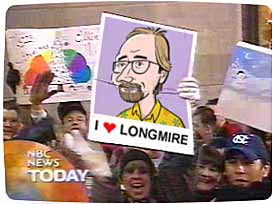 Ann: Nnnnoooooooooooooooooo!!!!! Katie: Where was I? Oh yeah... David, there are reports that there is strong support in favor of Hamby among the public there. Any information on that? David Gregory: Yes, Katie. There is a spirit of civil disobedience in the air in Knoxville as people are in favor of Hamby's purpose, whatever that may be. Quick-thinking vendors are selling t-shirts that read "Go, Brian, Go!" The public has been active in protesting and taunting local police and federal agents to show their support. In addition to all that, a makeshift stage has been constructed near the base of the Sunsphere and a concert featuring musical entertainment and activist speakers is currently in progress.