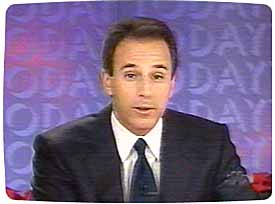 Al: What about my t-shirt? David Gregory: Oh, I can't believe... this is unreal... OH, THE HUMIDITY!!!!! I can't bear to watch the...it's so...oh, I've soiled myself... Katie: Well, this is quite unbelievable... however, we have to break away briefly for a few messages from our sponsors. We'll be back with Today and more coverage on this incredible event in a moment... Matt: Yeah, we gotsta pay them bills...