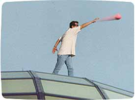 David Gregory: Katie, there seems to be some movement on top of the Sunsphere. Wait... yes... the music seems to have gotten Hamby's attention. Let's zoom in with the telephoto and see what...